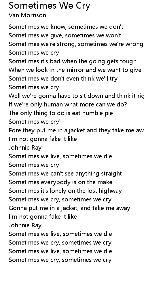 Sometimes we cry, sometimes we cry |