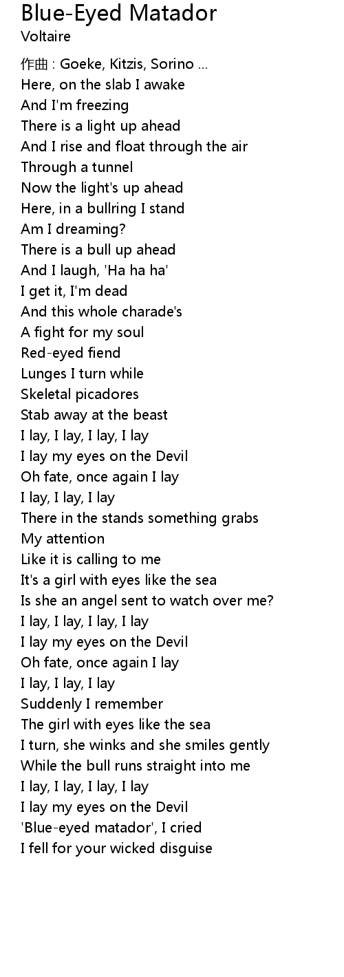 | Song | Blue-Eyed Matador |