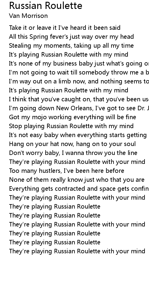 Stop playing Russian Roulette with my mind |