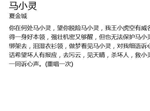 | 你在何处马小灵,望你脱险马小灵,我王小虎空有威名,也练 | |