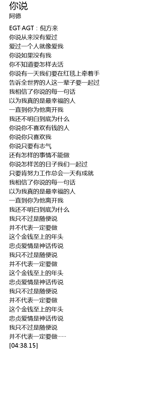 | [03:57.96] | 我只不过是随便说 |