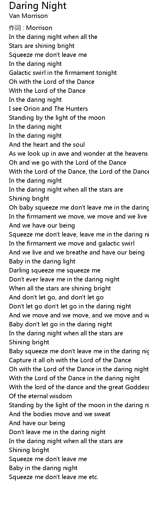 | Oh baby squeeze me don' t leave me in the daring night | |