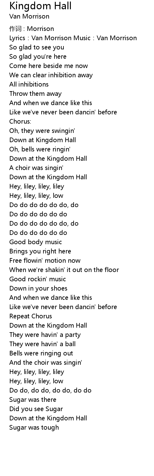 | Song | Kingdom Hall |