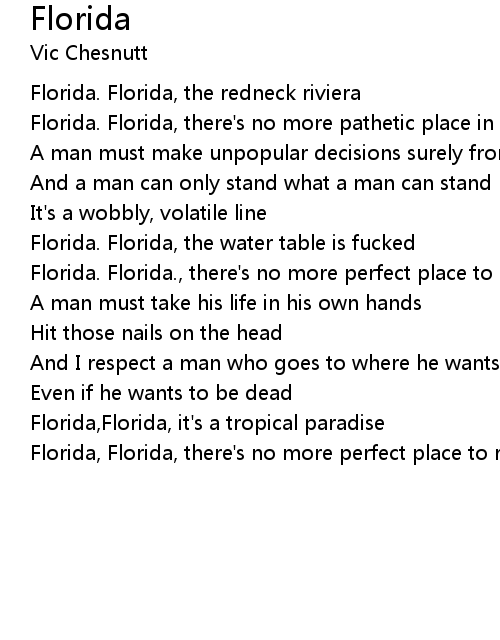 Florida, Florida, there's no more perfect place to retire from life |