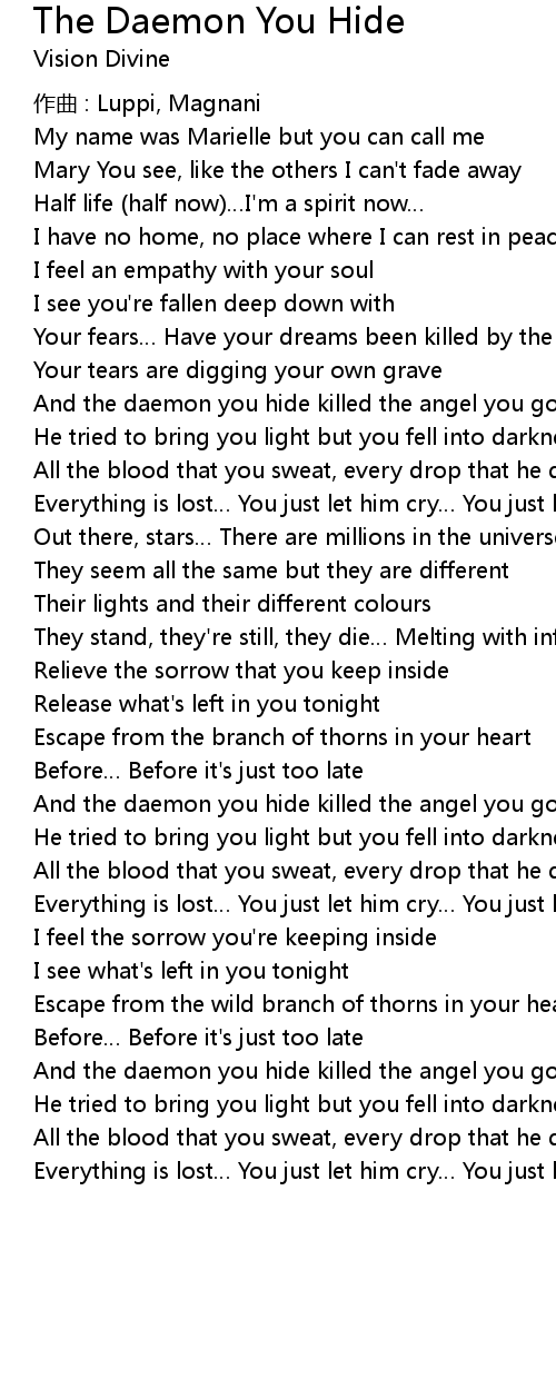 | Song | The Daemon You Hide |