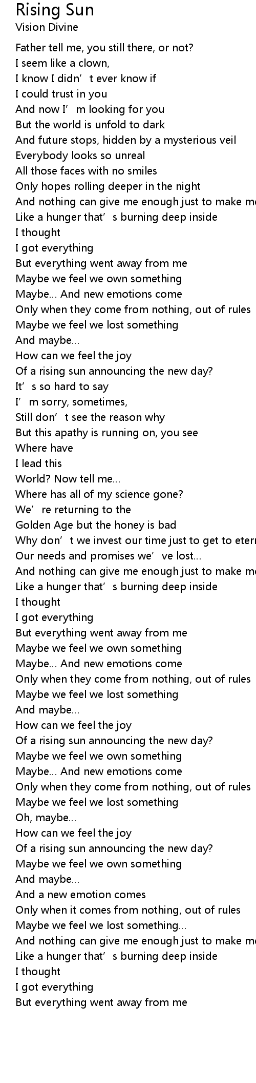 | Song | Rising Sun |