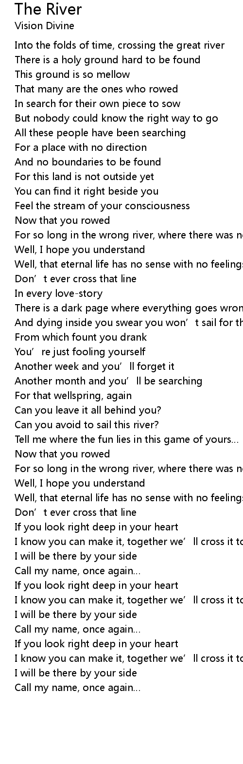 | And dying inside you swear you won’t sail for that river of passion | |