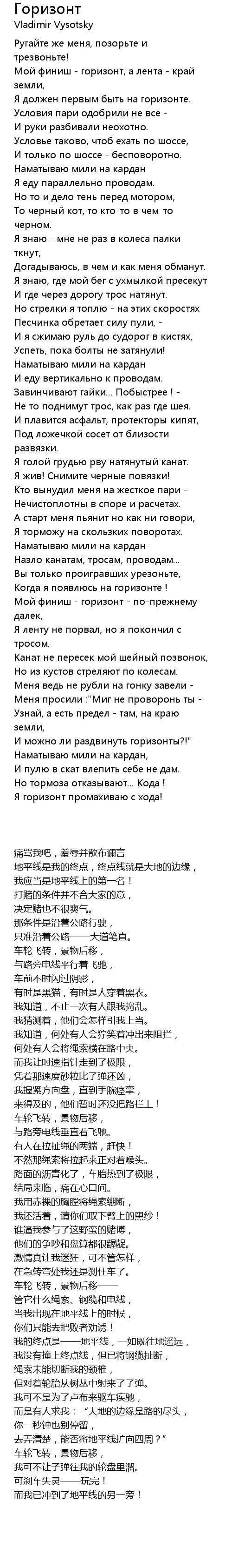 Мой финиш - горизонт - по-прежнему далек, |