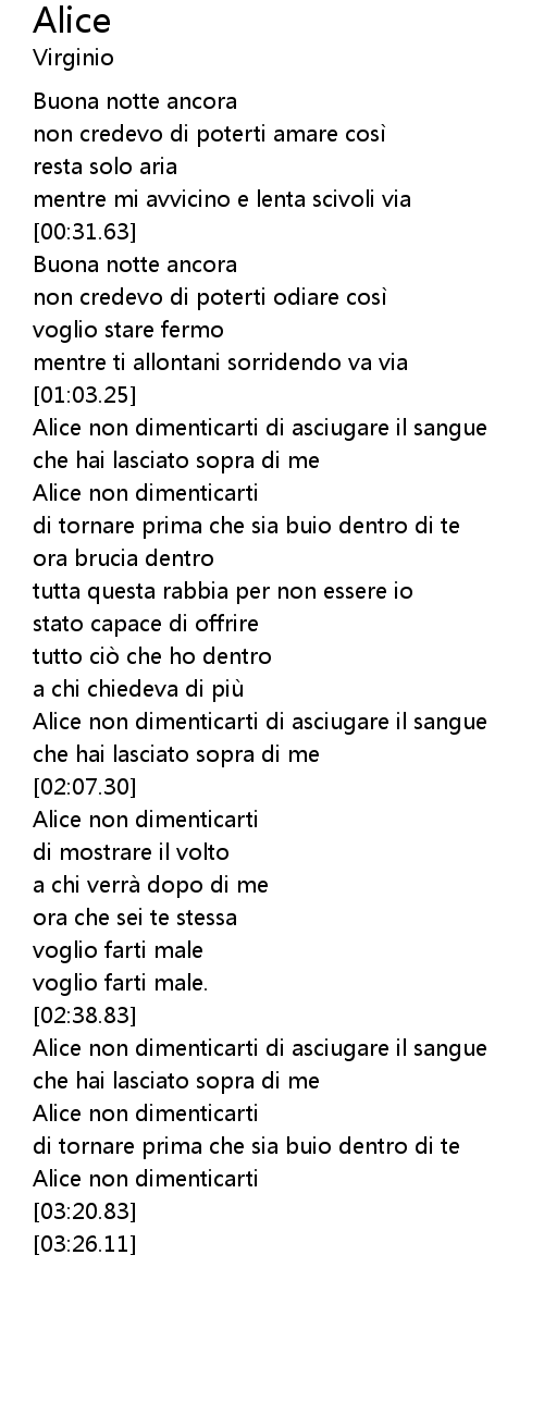 | [02:08.13] | Alice non dimenticarti |