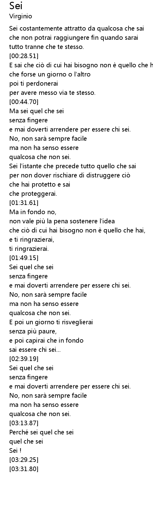 | [00:30.62] | E sai che cio di cui hai bisogno non e quello che hai, |