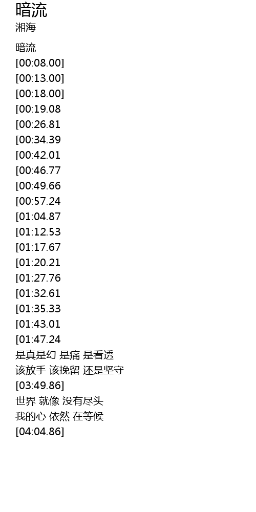 | [03:21.97][01:35.33] | 时间 就像 一股暗流 |