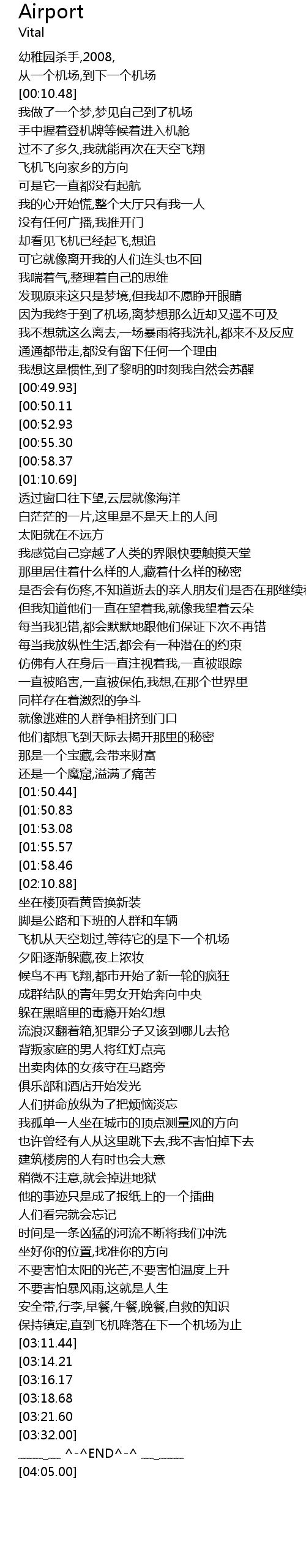 | [00:35.45] | 因为我终于到了机场,离梦想那么近却又遥不可及 |