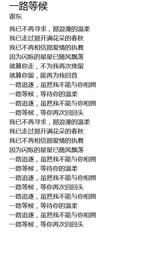 | [03:01.00] | 一路等候,等待你的温柔 |