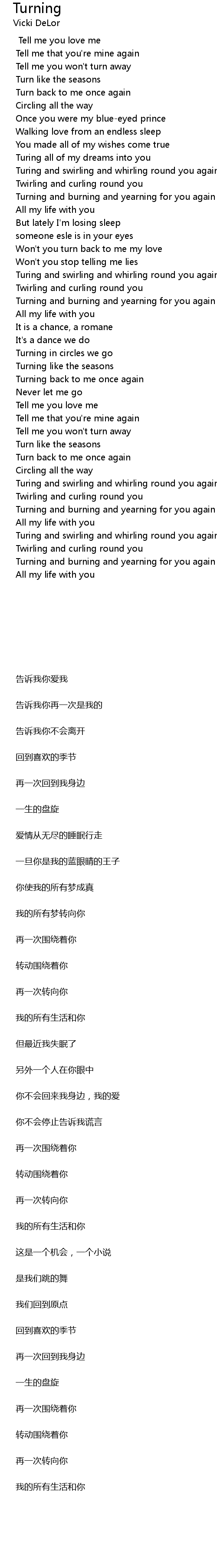 | Turning and burning and yearning for you again | |