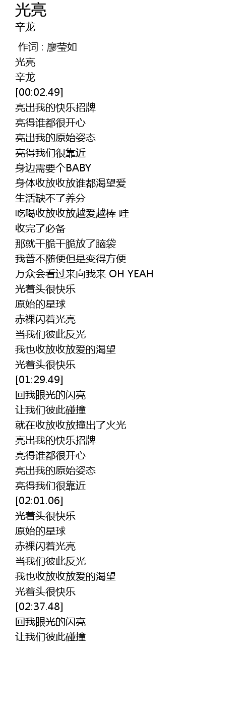 | [02:22.92] | 赤裸闪着光亮 |
