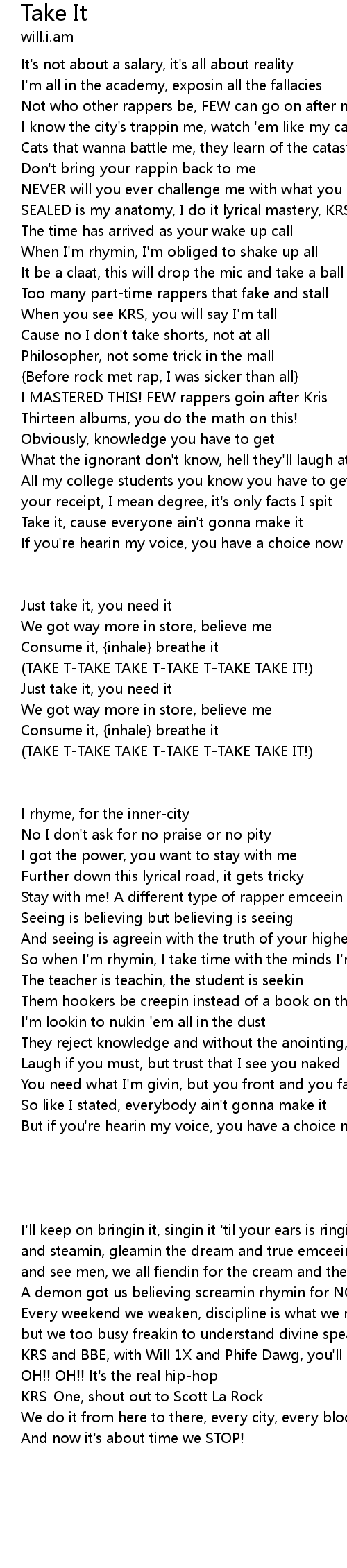 | [Chorus: Will.I.Am (KRS)] | |