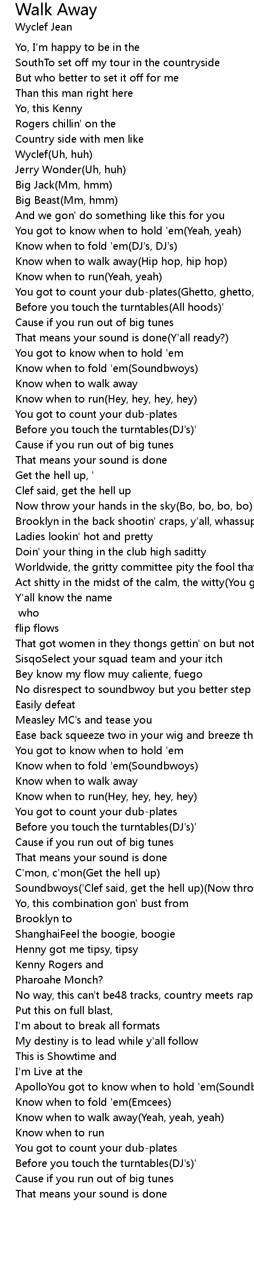 Know when to walk away(Hip hop, hip hop) |