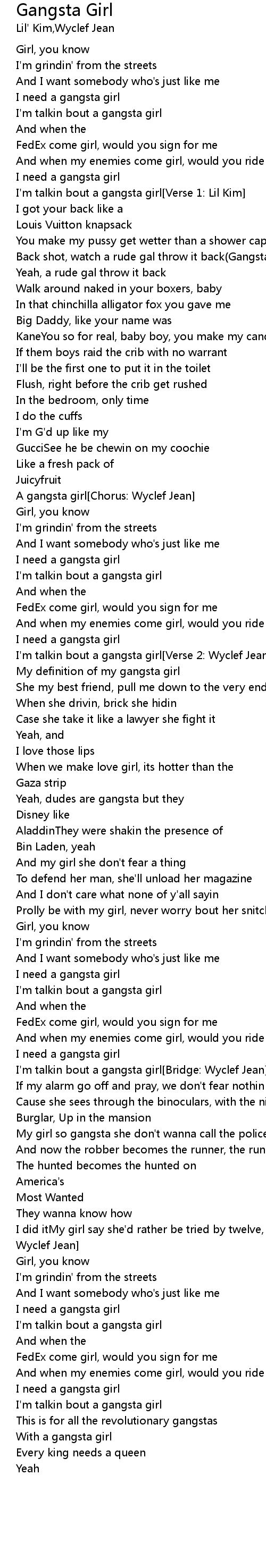 I'm talkin bout a gangsta girl[Verse 2: Wyclef Jean] |