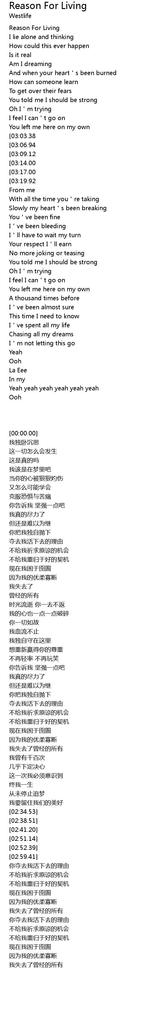 | [00:00.00] | Reason For Living |