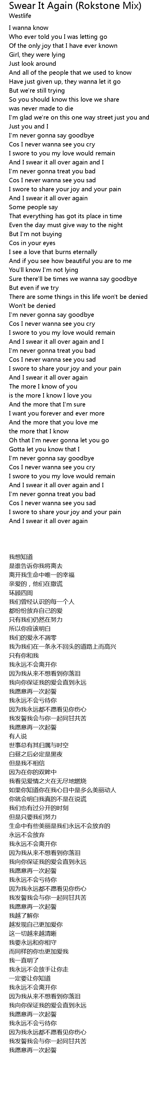 And I swear it all over again |