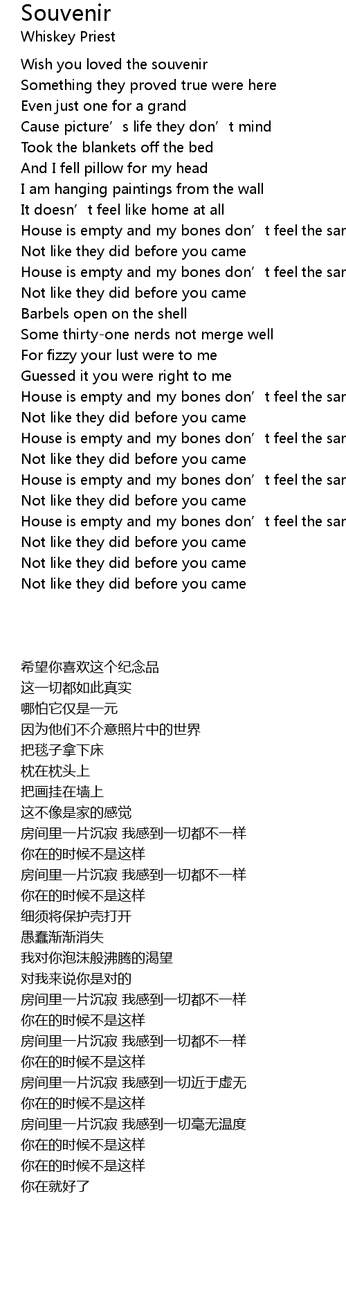 | [00:21.747] | Wish you loved the souvenir |