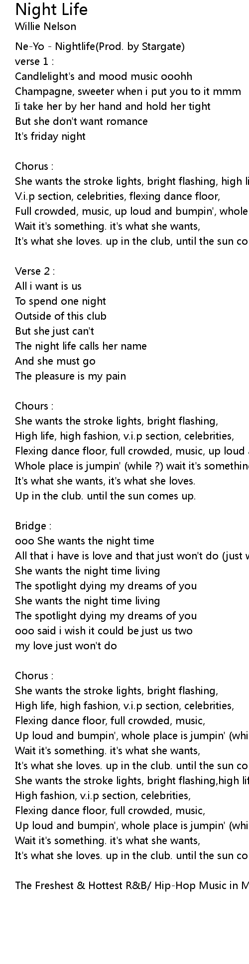 She wants the stroke lights, bright flashing, high life, high fashion, |