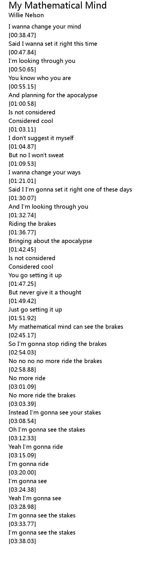 My mathematical mind can see the brakes |