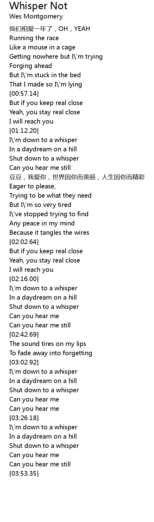 | [03:04.38] | I\'m down to a whisper |
