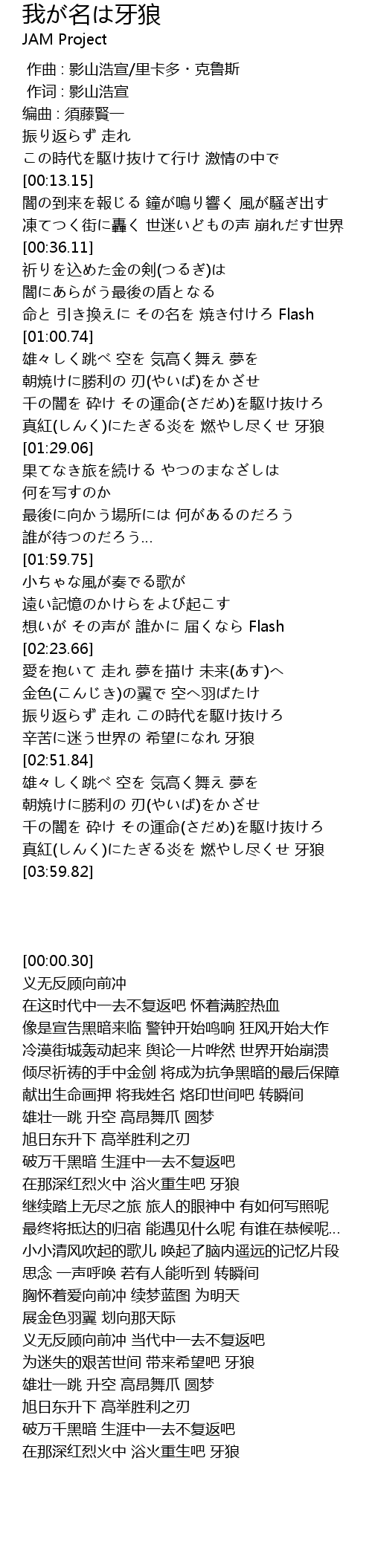 | [02:41.41] | 辛苦に迷う世界の 希望になれ 牙狼 |