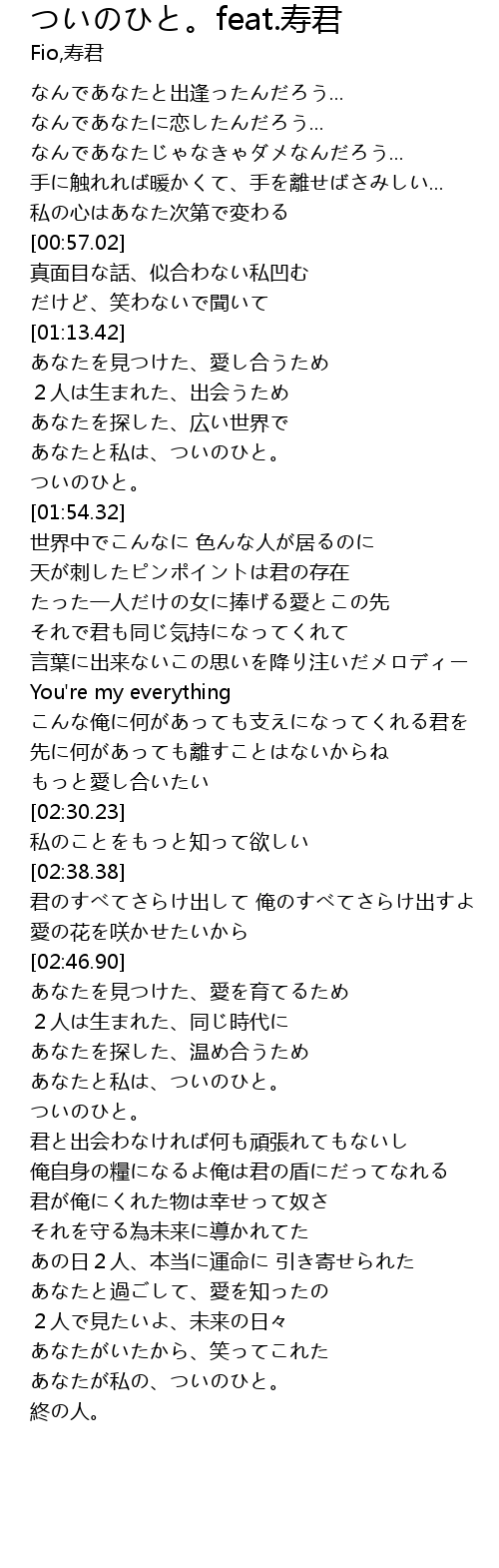 | [03:12.31] | あなたと私は、ついのひと。 |