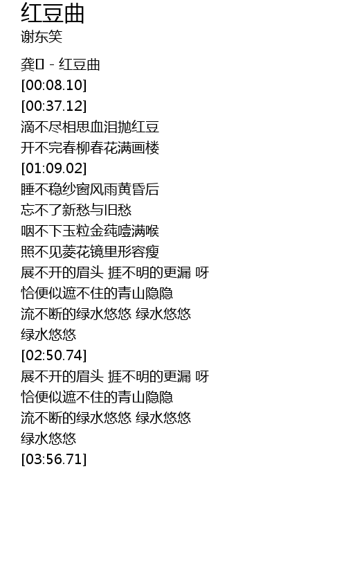 | [00:38.84] | dī bù jìn xiāng sī xuè lèi pāo hóng dòu |