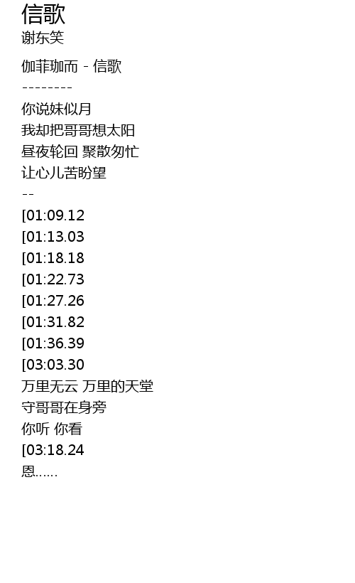 | [00:05.00] | 伽菲珈而 - 信歌 |