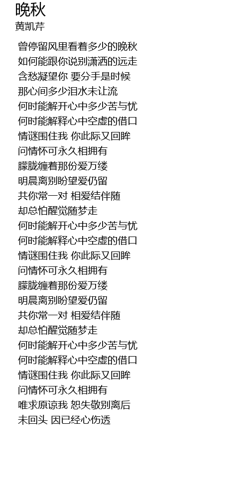 | [00:26.0] | 曾停留风里看着多少的晚秋 |