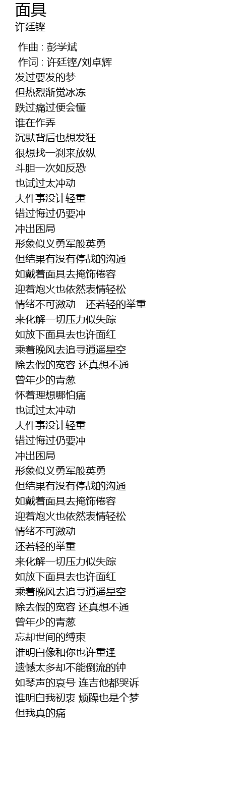 | [00:01.00] | 作词 : 许廷铿/刘卓辉 |
