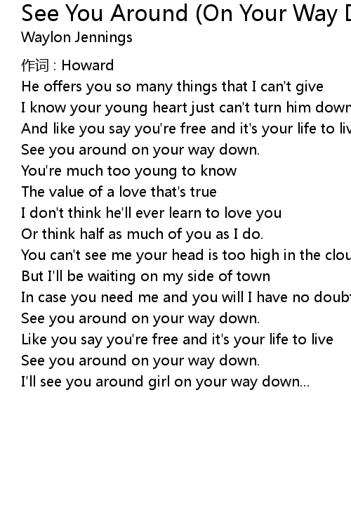 | I' ll see you around girl on your way down... |