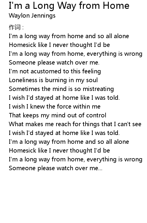 | I'm a long way from home and so all alone | |
