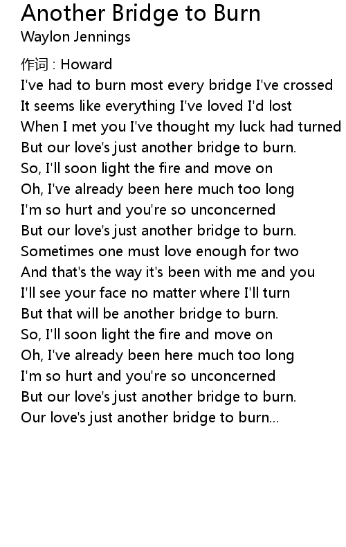 | Our love' s just another bridge to burn... |