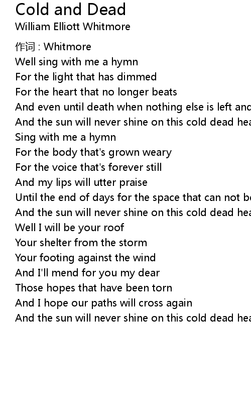 | And the sun will never shine on this cold dead heart of mine | |