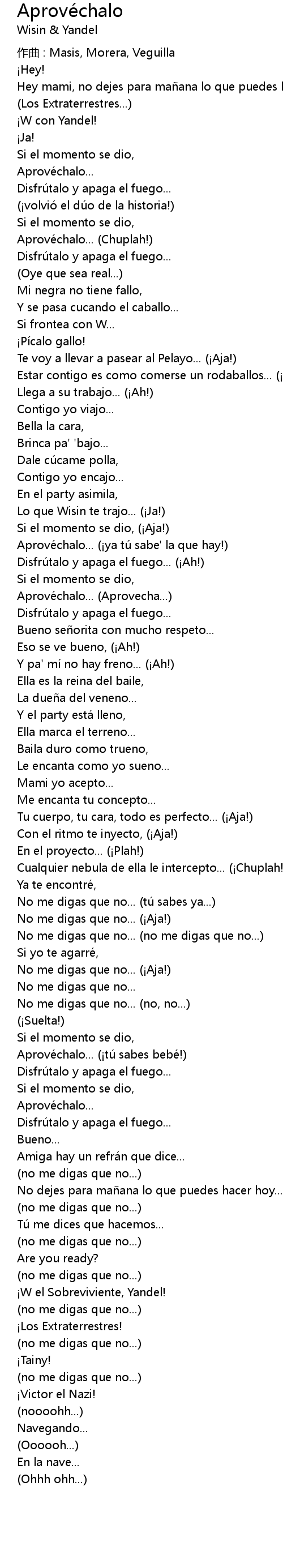 | Song | Aprovéchalo |
