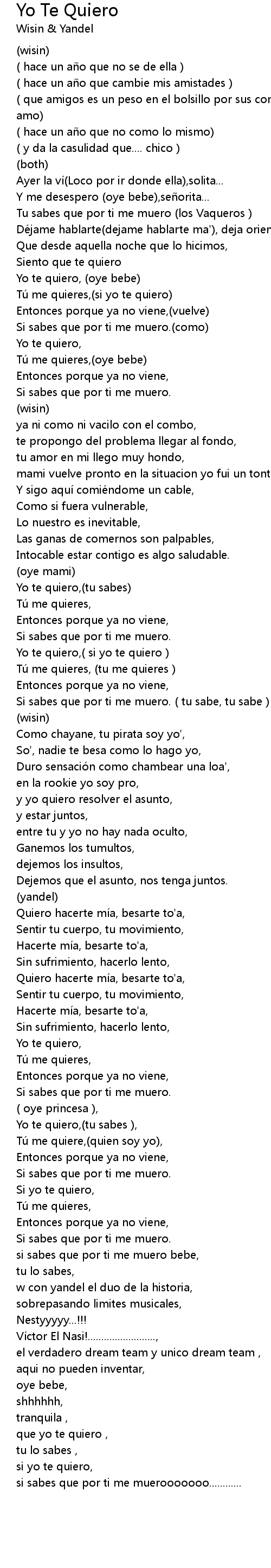 | Si sabes que por ti me muero. ( tu sabe, tu sabe ) | |