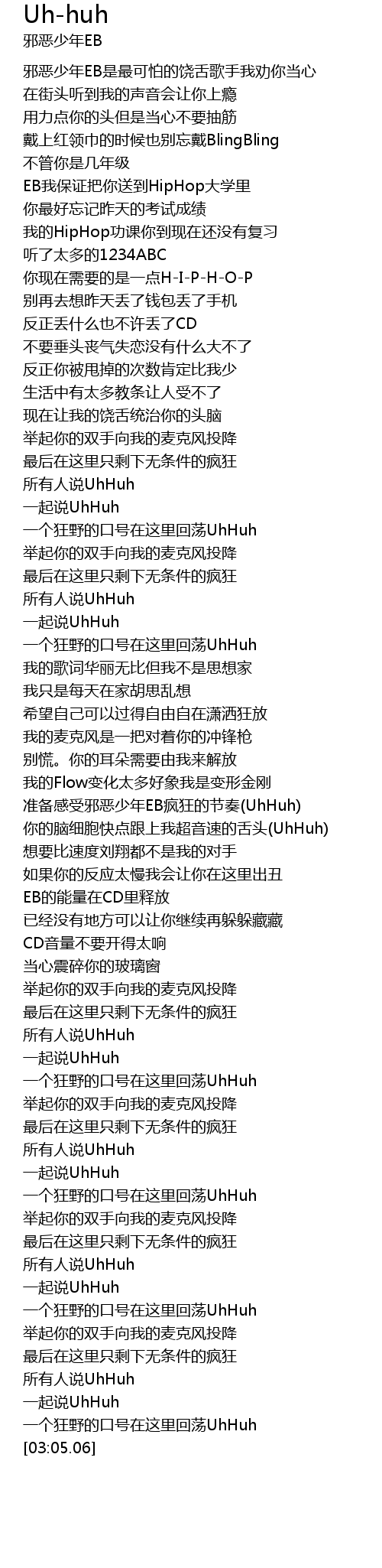 | [01:55.50] | 准备感受邪恶少年EB疯狂的节奏(UhHuh) |