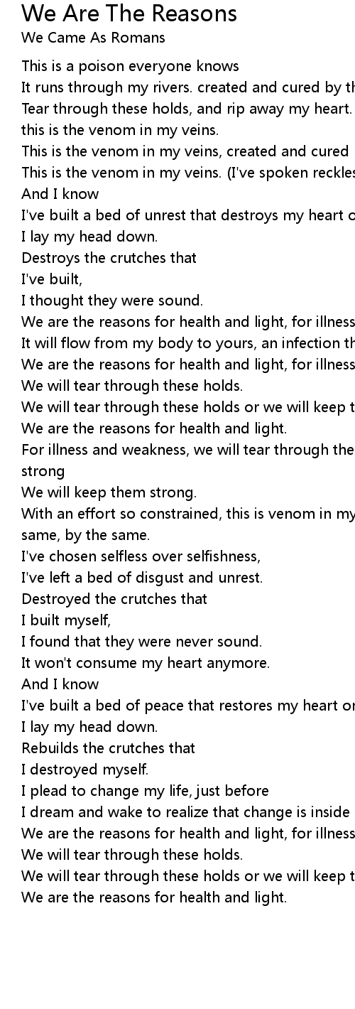 Tear through these holds, and rip away my heart. with an effort so constrained, this is the venom in my veins. |