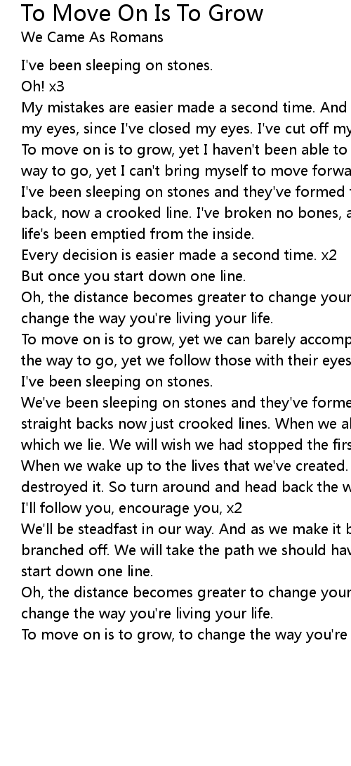 To move on is to grow, yet I haven't been able to accomplish either. I know the way to go, yet I can't bring myself to move forward. |