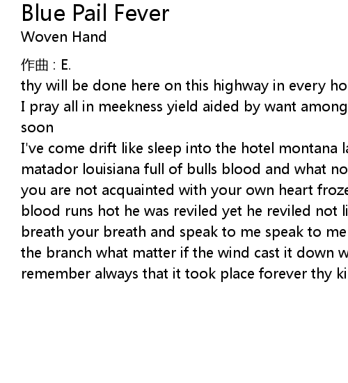| I' ve come drift like sleep into the hotel montana lay low for thy names sake el matador louisiana full of bulls blood and what not coarse jest to a tight knot you are not acquainted with your own heart frozen prayer upon my lips inside the blood runs hot he was reviled yet he reviled not like a voice in an empty house breath your breath and speak to me speak to me it' s a dry leaf that shivers on the branch what matter if the wind cast it down with a ruthless hand cause we remember always that it took place forever thy kingdom come in whosoever |