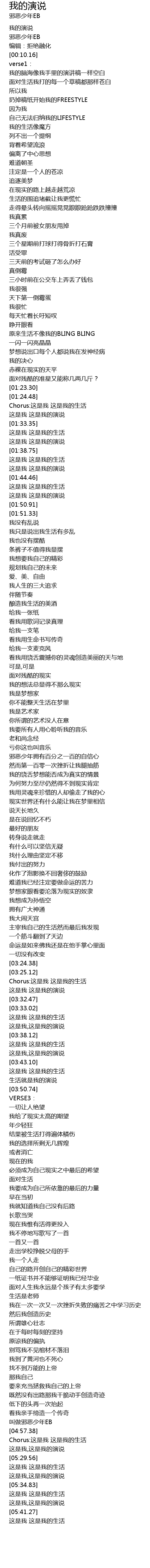| [00:31.79] | 扔掉稿纸开始我的FREESTYLE |