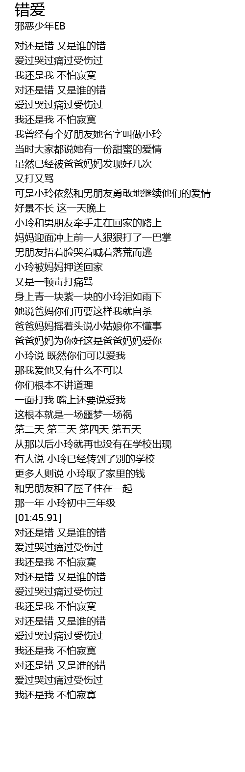 | [02:12.39] | duì hái shì cuò yòu shì shuí de cuò |