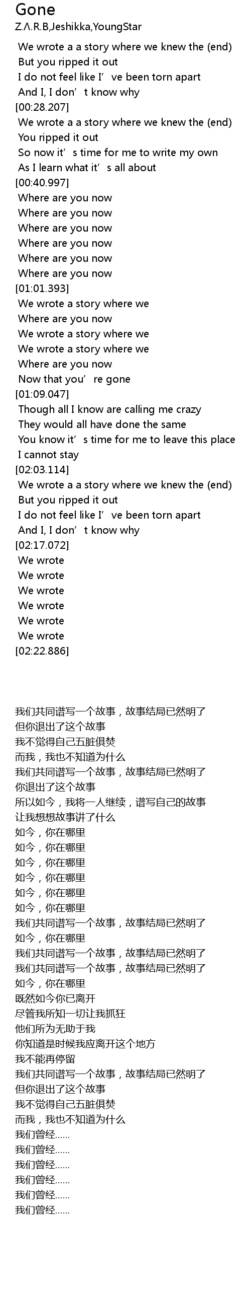 | [02:03.806] | We wrote a a story where we knew the end |
