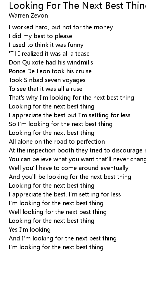 I'm looking for the next best thing |