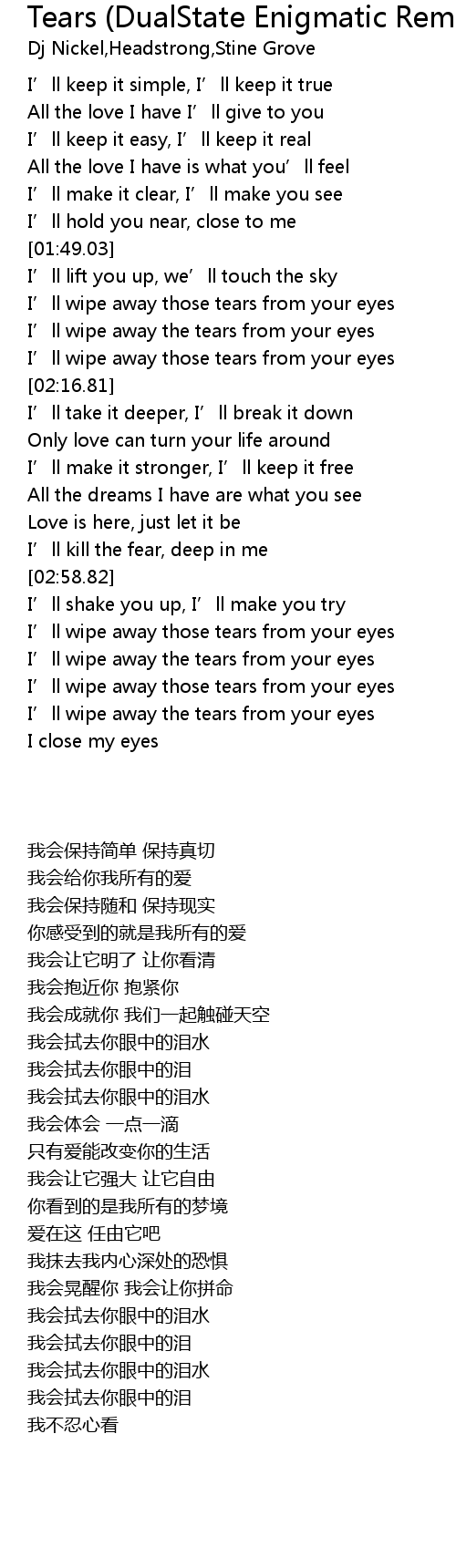 | [02:11.93] | I’ll wipe away those tears from your eyes |