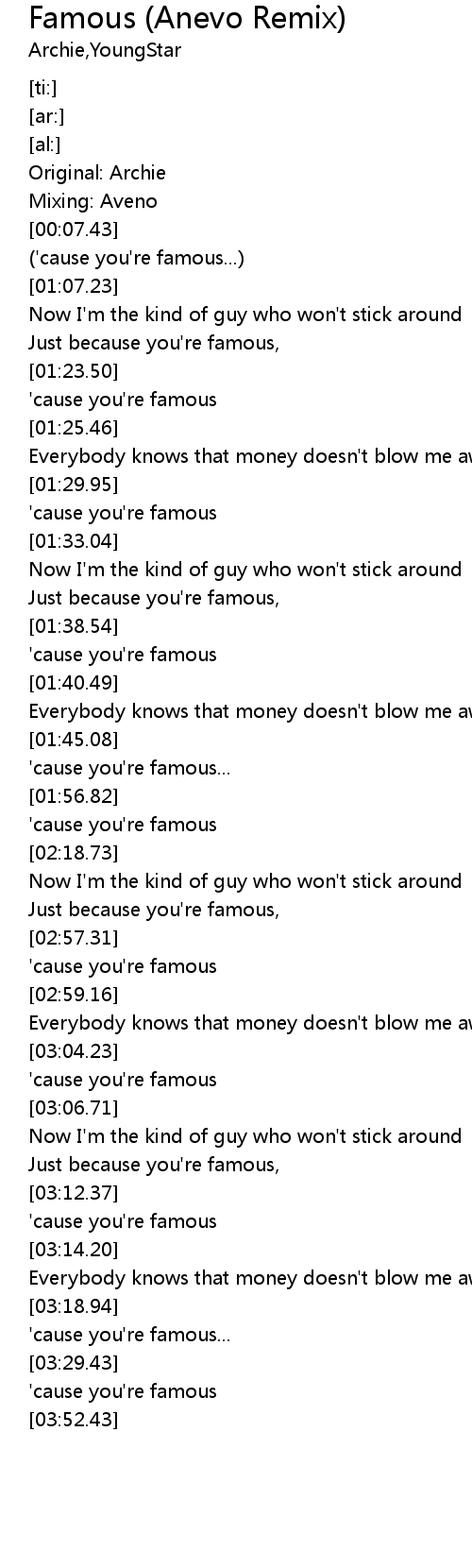 | [01:18.31] | Now I'm the kind of guy who won't stick around |